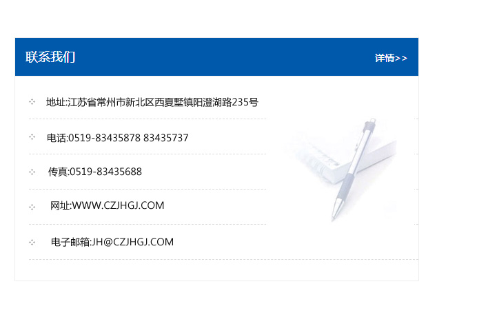 傳真:0519-83435688    郵編:213135    網址:WWW.czjhgj_com.666vote.com    電子郵箱:JH@czjhgj_com.666vote.com